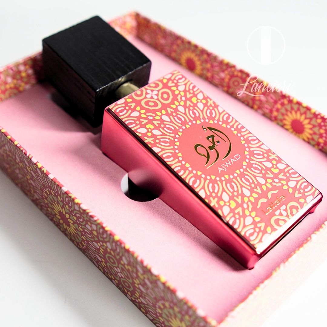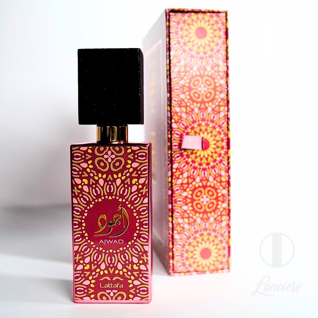 Ajwad é uma fragrância ousada e sofisticada que abre com notas frutadas crocantes. Estas dão lugar a um coração de couro, sândalo e cedro, criando um aroma amadeirado e sensual. Na base, o âmbar, o almíscar, o vetiver e a baunilha adicionam calor e profundidade, deixando um rasto cativante e inesquecível.